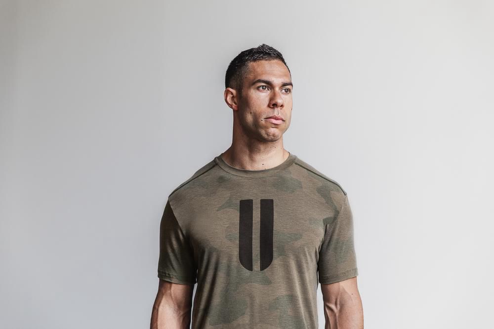 NOBULL Men's Horns Tee - Army Green Camo - Ireland (9856KHCRP)