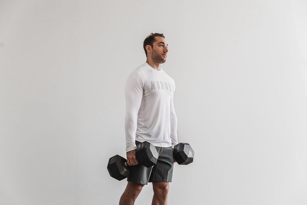 NOBULL Men's Long Sleeve Tee - White - Ireland (6930PQKNF)