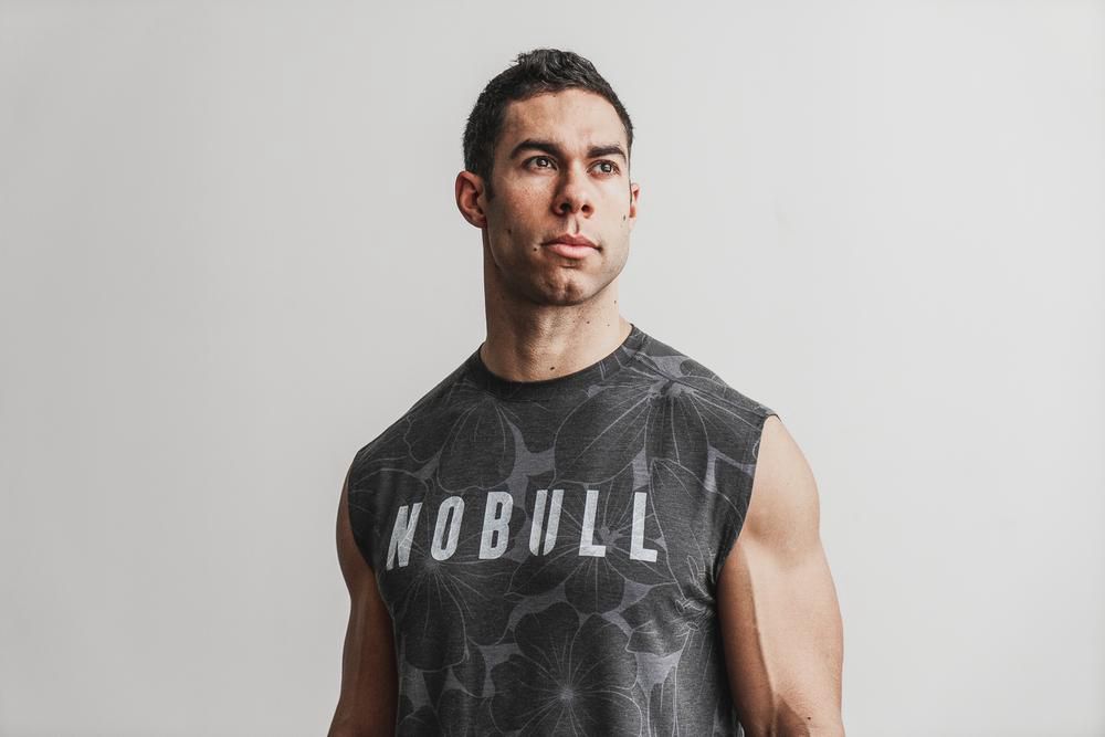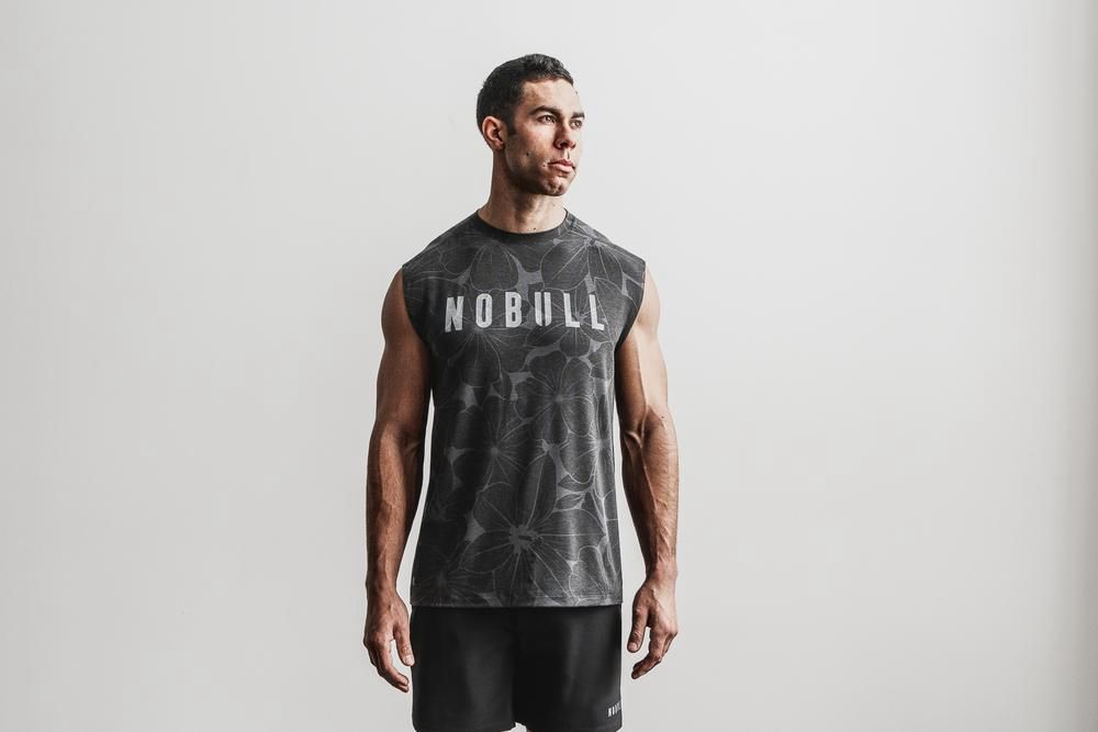 NOBULL Men's Sleeveless Tee - Charcoal Hibiscus - Ireland (5784MAFHW)