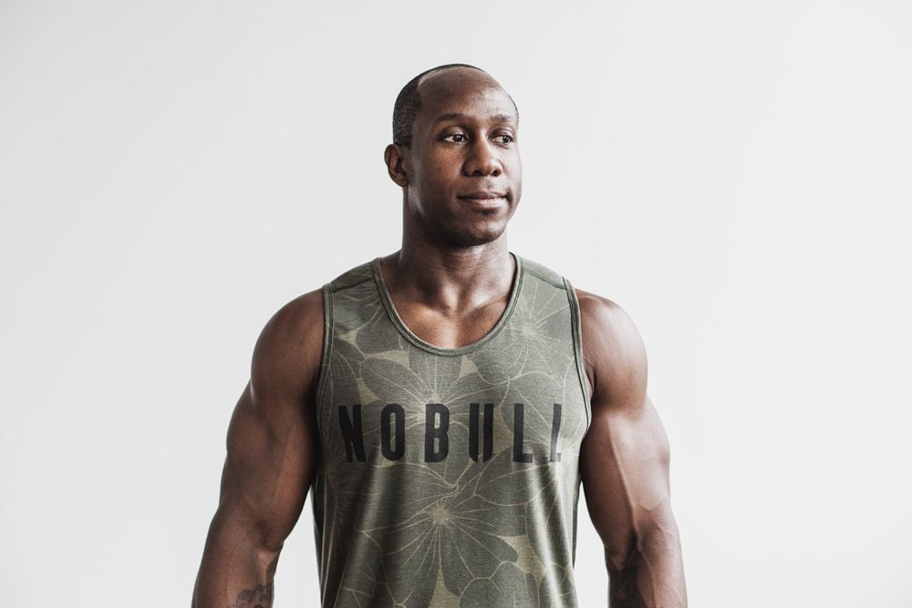 NOBULL Men's Tank Tops - Army Green Hibiscus - Ireland (9152FJWOX)