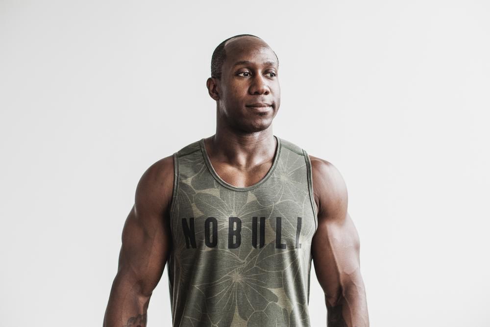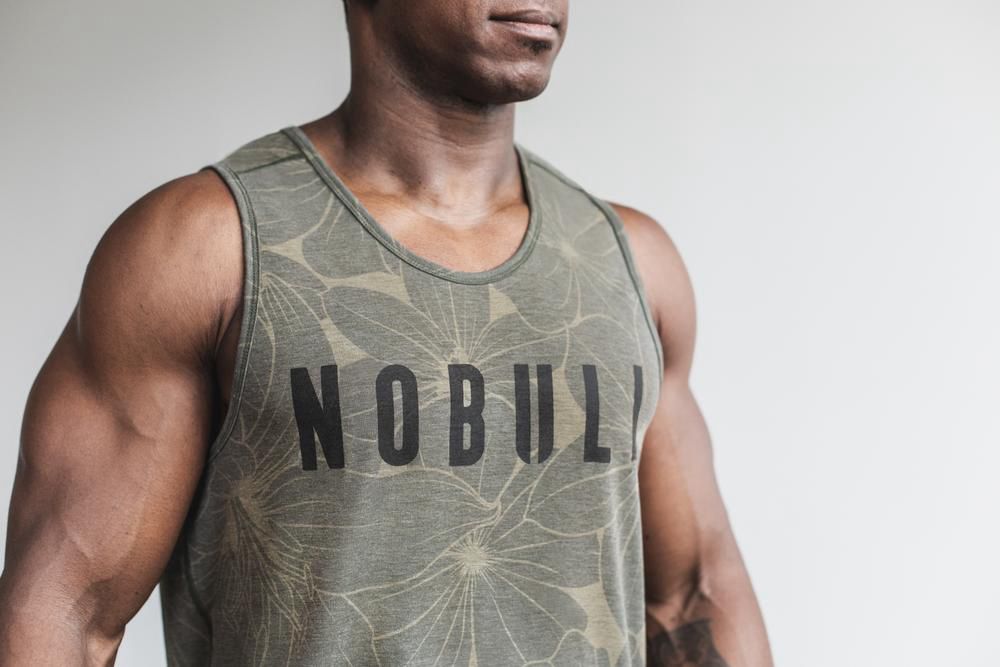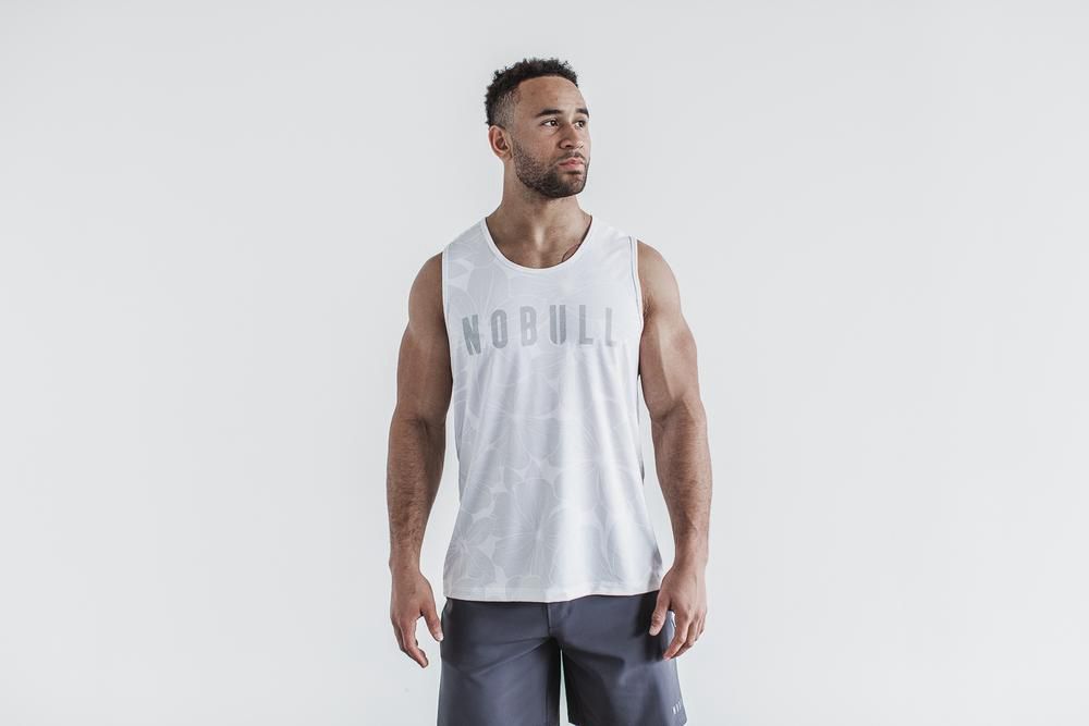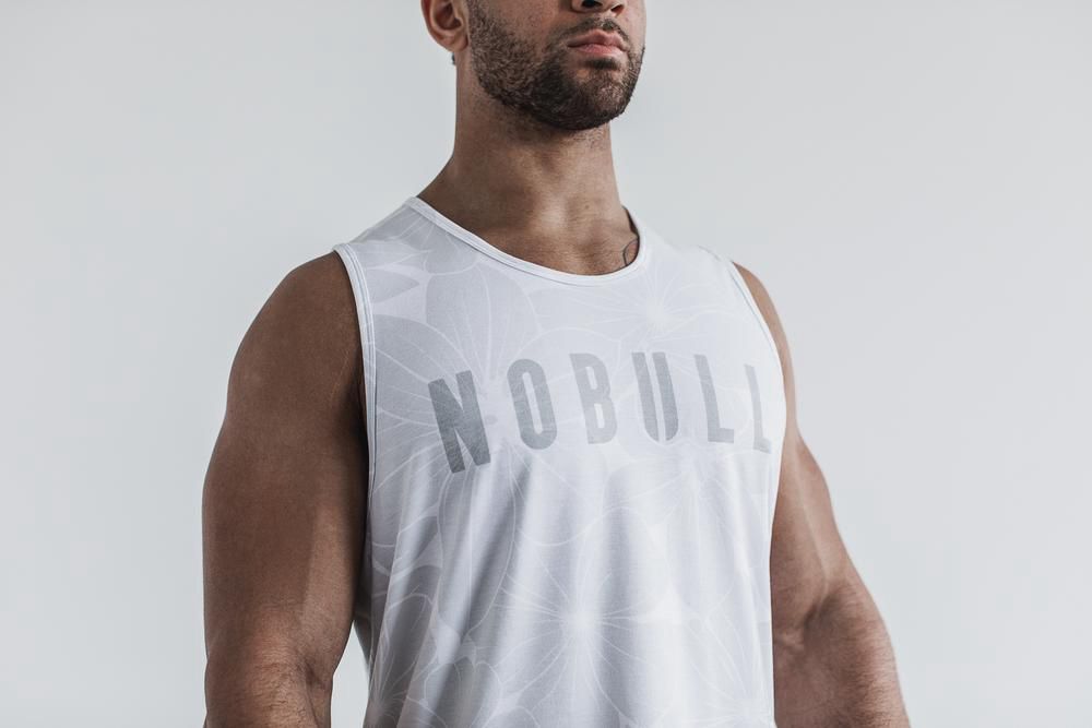 NOBULL Men's Tank Tops - White Hibiscus - Ireland (1086UCXWA)