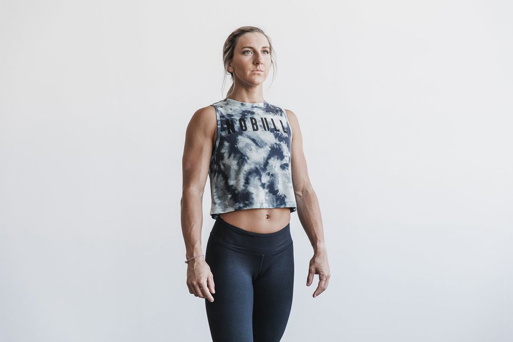 NOBULL Women's Muscle Tank Tops - Crystal Blue & Coastal Blue Tie-Dye - Ireland (0561PYRXC)