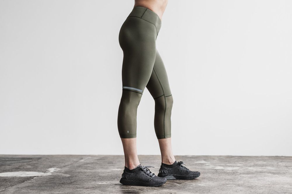 NOBULL Women's Pace Crop Tights - Army Green - Ireland (4705FKLWM)