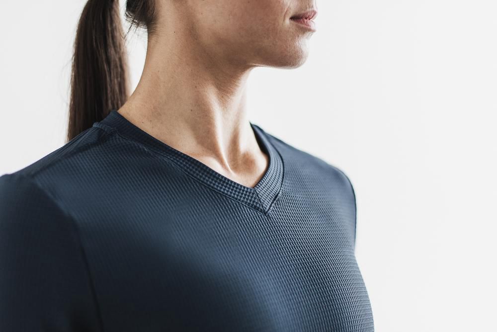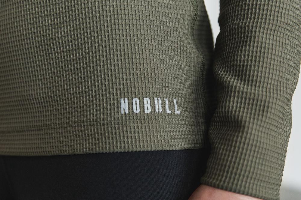 NOBULL Women's V-Neck Waffle Long Sleeve - Army Green - Ireland (9786FCDRH)