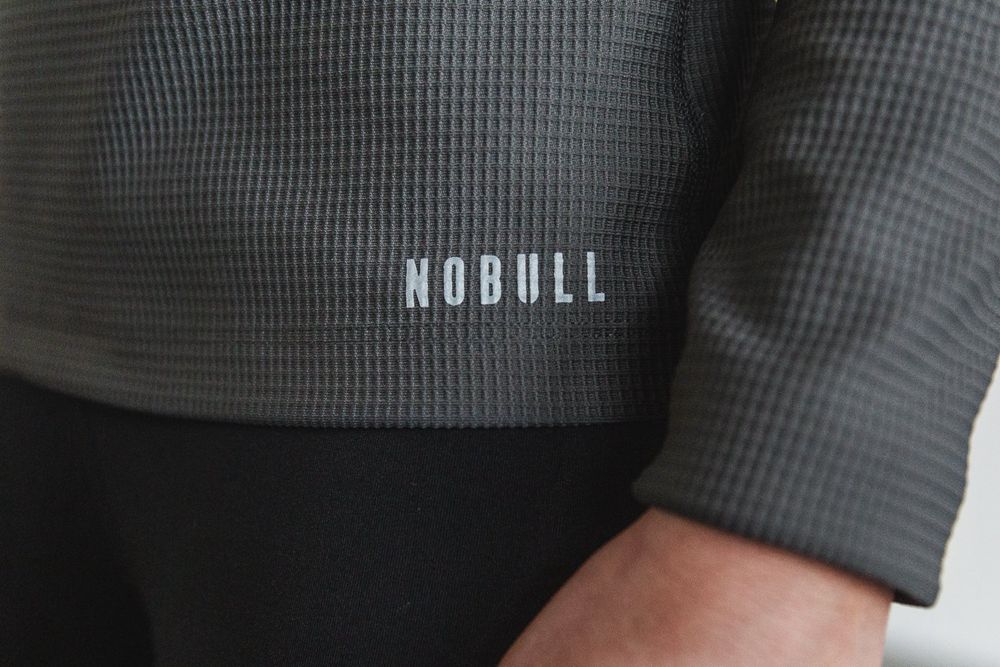 NOBULL Women's V-Neck Waffle Long Sleeve - Dark Shadow - Ireland (3472XMBNC)